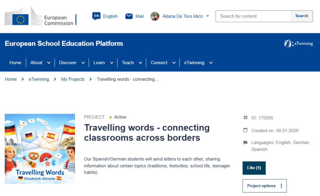También inició un proyecto e-twinning de correspondencia con Osnabrück, Alemania.